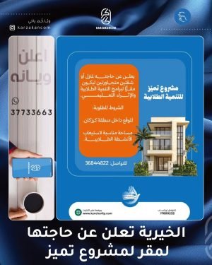 📢 إعـلان مشروع تميّز للتنمية الطلابية التابع لجمعية كرزكان الخيرية يعلن عن حاجته لمنزل أو شقتين متجاورتين ليكون مقرًّا لبرامج التنمية الطلابية والإثراء التعليمي. الشروط المطلوبة: الموقع داخل منطقة كرزكان. مساحة مناسبة لاستيعاب الأنشطة الطلابية. إمكانية الإيجار لمدة طويلة. 📞 للتواصل: 36844822 نقدّر تعاونكم ودعمكم في خدمة أبنائنا الطلبة🌟 @karzakancharity …
