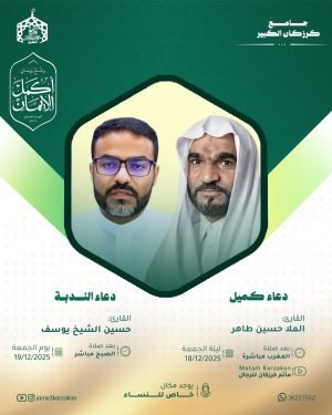 …•|【 دعاء كميل&دعاء الندبة 】|•… 📖 *دعاء كميل* 🗓 *18/12/2025* ⏱ بعد الصلاة مباشرة 🗣 القارئ الملا حسين طاهر 📺 *الـبـث المباشر على قناة* *مـأتـم كـرزكـان للرجـال* http://www.youtube.com/MatamKarzakan/live 📖 *دعاء الندبة* 🗓 *19/12/2025* ⏱ بعد الصلاة مباشرة 🗣 القارئ حسين الشيخ يوسف 🧕يوجد مكان للنساء ╼ ╾╼ ╾╼ ╾╼ ╾╼ …