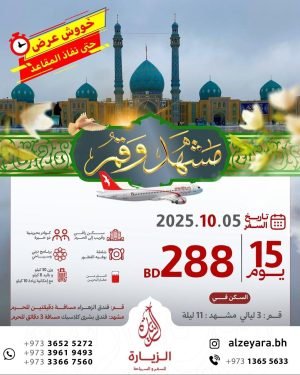 لشهر أكتوبر 2025 ✈️ حملة الزيارة ✈️ 🗓️ تفاصيل الرحلة ✈️ تاريخ السفر 5/10/2025 📍 الوجهة: مشهد و قم ⏳ المدة: 15 يوم 3 ليالي قم 11 ليلة مشهد 💰 السعر 🔥 288 دينار بحريني🔥 🔥 2880 ريال سعودي🔥 ⸻ ✈️ السفر من مطار البحرين الدولي 🛩️ على متن: طيران …