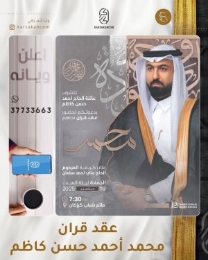أكمل القراءة » 🌺تتشرف عائلة الحاج أحمد حسن كاظم بدعوتكم لحفل عقد قران نجلهم *«محمد»*، بمأتم شباب كرزكان.