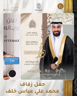 أكمل القراءة »🌺يتشرف الحاج علي عباس خلف بدعوتكم لحفل زفاف نجله *«محمد»*، بمأتم شباب كرزكان.