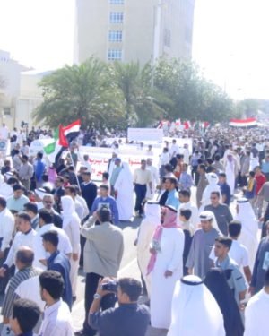 أحتشد اليوم جمع من طلاب جامعة البحرين في مسيرة ضد الحرب على العراق…..