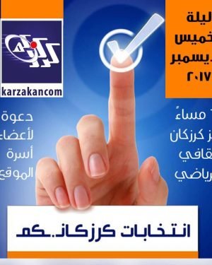 . إلى/ أعضاء أسرة موقع كرزكانـ.ـكم المحترمين ندعوكم لحضور اجتماع الجمعية العمومية غير العادية وذلك يوم الاربعاء ٦ ديسمبر ٢٠١٧ في تمام الساعة ٦ مساءاً؛ لمناقشة الهيكل التنظيمي لمجلس الإدارة وتعديله ويليه بعد ذلك جلسة الانتخابات .. . . شاكرين ومُقدّرين حُسن تعاونكم رئيس وأعضاء مجلس الإدارة المصدر