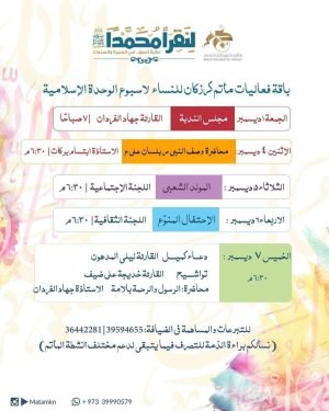 باقة فعاليات مأتم كرزكان للنساء لاسبوع الوحدة الاسلامية #karzakancom #karzakkan #karzakan #bahrain #كرزكان #مأتم_كرزكان_للنساء #إعلانات_مؤسسات_كرزكان المصدر