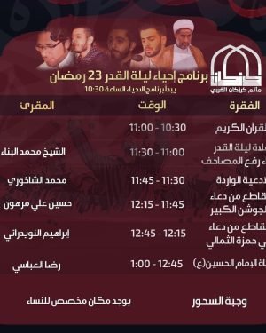 أكمل القراءة »الليلة ٢٣ بعنوان ( في أجواء ليلة القدر ) مع سماحة الشيخ إدريس العكري . . في …