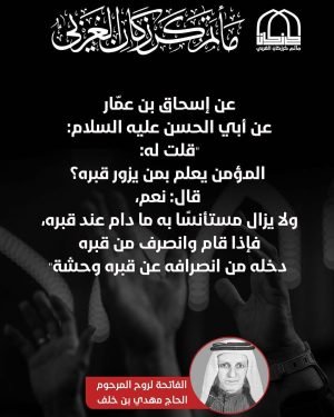 عن إسحاق بن عمّار عن أبي الحسن عليه السلام: “قلت له: المؤمن يعلم بمن يزور قبره؟ قال: نعم، ولا يزال مستأنسًا به ما دام عند قبره، فإذا قام وانصرف من قبره دخله من انصرافه عن قبره وحشة” 🚩 الفاتحة لروح المرحوم الحاج مهدي بن خلف وجميع المؤمنين والمؤمنات #Bahrain #Karzakan #Matmalgharbi #مأتم_كرزكان_الغربي #كرزكان #البحرين المصدر