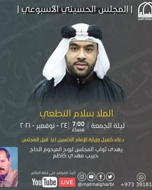 أكمل القراءة »المجلس الحسيني الاسبوعي ليلة الجمعة 24/11/2021 الملا سلام النطعي الساعة 7:0…