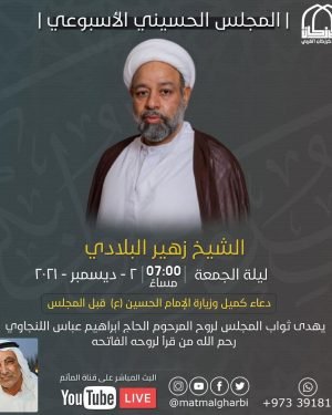 المجلس الحسيني الاسبوعي ليلة الجمعة 2/12/2021 الشيخ زهير البلادي الساعة 7:0…