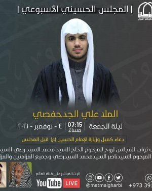 أكمل القراءة »المجلس الحسيني الاسبوعي ليلة الجمعة 4/11/2021 الملا علي الجدحفصي الساعة 7:1…