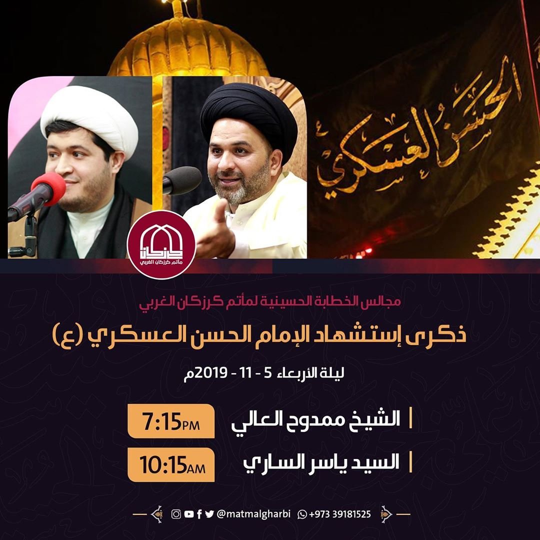 برنامج الخطابة لمأتم كرزكان الغربي في ذكرى إستشهاد الإمام الحسن العسكري(ع) . . …
