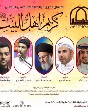 برنامج الاحتفال بمولد كريم أهل البيت الامام الحسن المجتبى(ع) في مأتم كرزكان الغر…