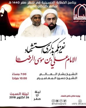 أكمل القراءة »برنامج الخطابة لمأتم كرزكان الغربي في ذكرى إستشهاد الامام علي بن موسى الرضا(ع)…