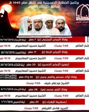 أكمل القراءة »برنامج الخطابة الحسينية في شهر صفر ١٤٤٠هـ لمأتم كرزكان الغربي . . …
