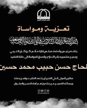 تتقدم إدارة مأتم كرزكان الغربي وجميع منتسبيه بخالص العزاء والمواساة لعائلة الفقيد المتوفى الحاج حسن حبيب محمد حسين . سائلين المولى القدير ان يتغمد الفقيد بواسع رحمته وان يسكنه فسيح جنته .. إنا لله وإنا إليه لراجعون . . #Bahrain #Karzakan #Matmalgharbi #مأتم_كرزكان_الغربي #كرزكان #البحرين المصدر
