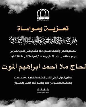 تتقدم إدارة مأتم كرزكان الغربي وجميع منتسبيه بخالص العزاء والمواساة لعائلة الفقيد المتوفى الحاج ملا أحمد ابراهيم الموت . سائلين المولى القدير ان يتغمد الفقيد بواسع رحمته وان يسكنه فسيح جنته .. إنا لله وإنا إليه لراجعون . . #Bahrain #Karzakan #Matmalgharbi #مأتم_كرزكان_الغربي #كرزكان #البحرين المصدر