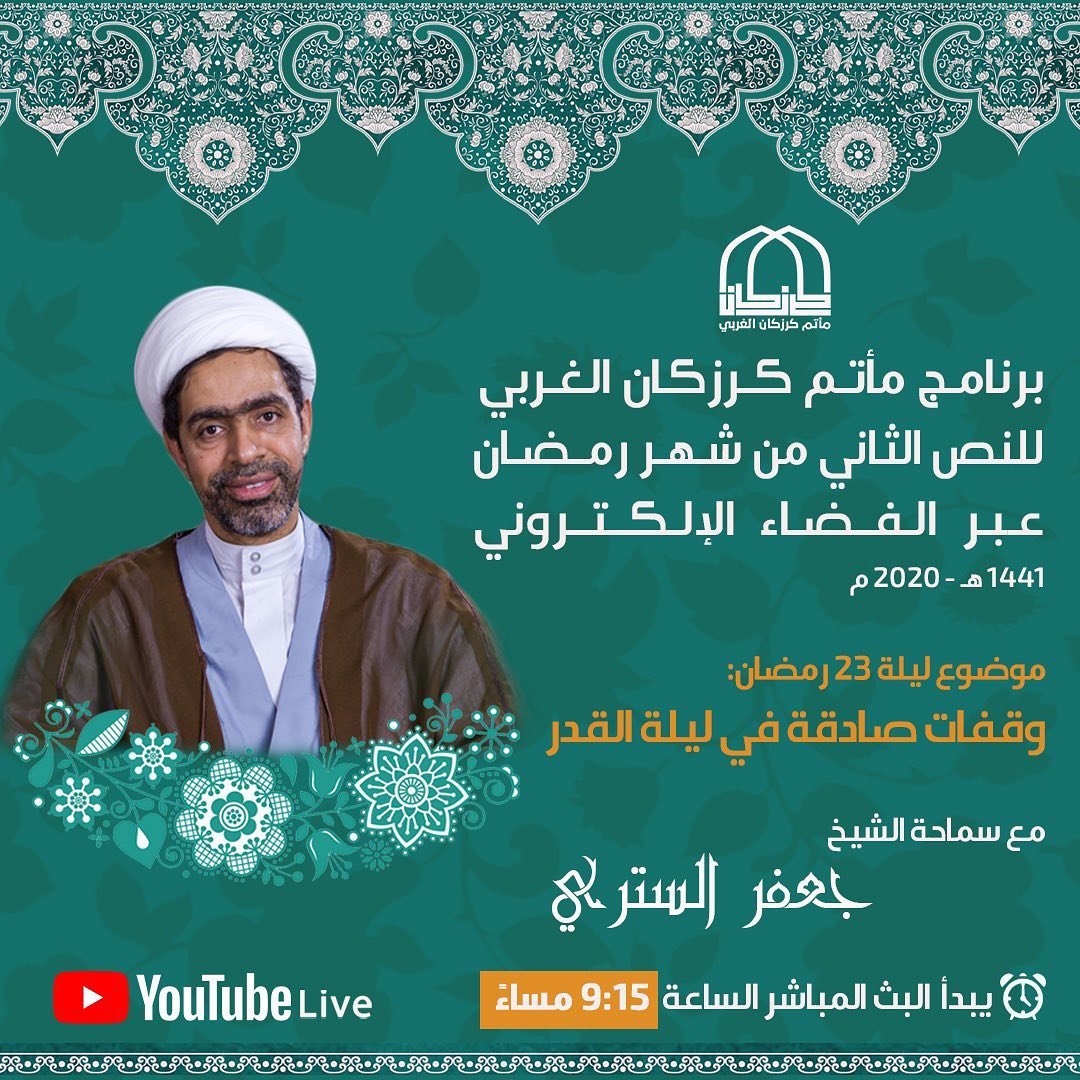 محاضرة ليلة ٢٣ رمضان بعنوان: 🔸وقفات صادقة في ليلة القدر🔸 . . ⏱الوقت : ٩:١٥ مساءً . 🎥 سيكون البث على قناة المأتم في اليوتيوب 🎥 . ⚠️ اضغط على اللنك في البروفايل للدخول على قناة اليوتيوب ⚠️ . . #Bahrain #Karzakan #Matmalgharbi #مأتم_كرزكان_الغربي #كرزكان #البحرين #رمضان #كرزكانكم #الشيخ_جعفر الستري المصدر