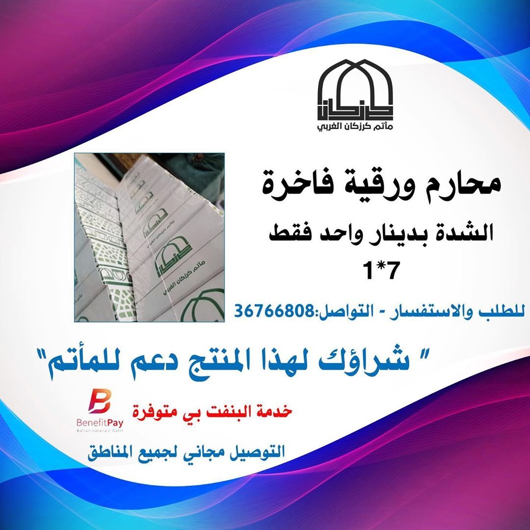محارم ورقية فاخرة الشدة بدينار واحد فقط ( ١*٧ ) . “شراؤك للمنتج دعم للمأتم” . للطلب والاستفسار التواصل: 36766808 . . 🚩خدمة البنفت بي متوفرة . 🚗خدمة التوصيل لجميع المنطاق بشكل مجاني . . #Bahrain #Karzakan #Matmalgharbi #مأتم_كرزكان_الغربي #كرزكان #البحرين #رمضان المصدر
