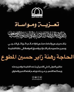 تتقدم إدارة مأتم كرزكان الغربي وجميع منتسبيه بخالص العزاء والمواساة لعائلة الفقي…