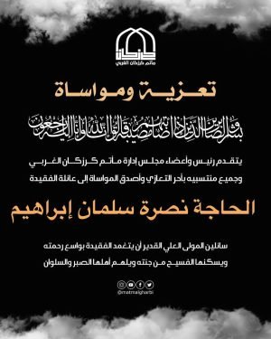 تتقدم إدارة مأتم كرزكان الغربي وجميع منتسبيه بخالص العزاء والمواساة لعائلة الفقيدة المتوفاة الحاجة نصرة سلمان إبراهيم . سائلين المولى القدير ان يتغمد الفقيدة بواسع رحمته وان يسكنها فسيح جنته .. إنا لله وإنا إليه لراجعون . . #Bahrain #Karzakan #Matmalgharbi #مأتم_كرزكان_الغربي #كرزكان #البحرين المصدر