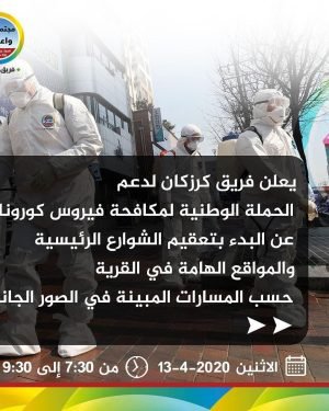 أكمل القراءة »يعلن فريق كرزكان لدعم الحملة الوطنية لمكافحة فيروس كورونا عن البدء بتعقيم الشوار…