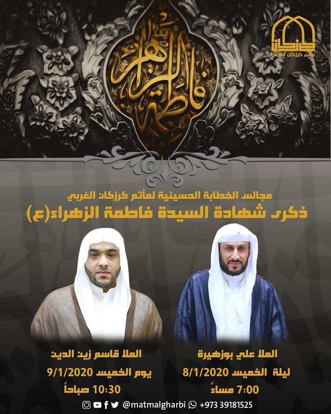 أكمل القراءة »برنامج الخطابة لمأتم كرزكان الغربي في ذكرى وفاة سيدة نساء العالمين السيدة فاطمة …