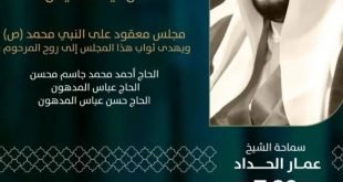 ‘ ▞ ﻣأﭠم ﻛرزﻛٱن ﻟﻟرﺟٱل ⌯ القراءة الأسبوعية ⌯ ↲ الخطيب: الشيخ عمار الحداد ↰ الـوقـــت: 7:30 مساءََ ↲ اللــــيلـة: ليلة الخميس ↰ المـوافق: 23/2/2022 ❞ مجلس معقود على النبي محمد (ص) ❝ ويهدى ثواب المجلس إلى أرواح المراحيم: ⇽ الحاج أحمد محمد جاسم محسن ⇽ الحاج عباس المدهون ⇽ …