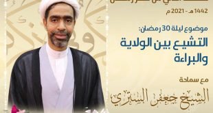 أكمل القراءة »مجلس ليلة ٣٠ رمضان بعنوان: التشيع بين الولاية والبراءة . مع سماحة الشيخ جعفر ال…