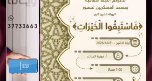 أكمل القراءة »🟣🌙 إعلان حضوري مجاناً للنساء والشابات في مسجد العسكريين