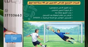 يُشترط أن يتكوّن كل فريق من 5 لاعبين مع حارس مرمى، ويبلغ عدد الفرق المشاركة 8 فرق موزعة على مجموعتين. وسيتم تحديد آلية البطولة والإعلان عن نظامها بعد إغلاق التسجيل. آخر موعد للتسجيل هو 24 ديسمبر، وعلى الراغبين بالتسجيل التواصل مع اللجنة الرياضية عبر الرقم: 37755731 شارك وكن نجمًا في …