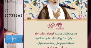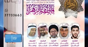 ≣▕ نـبـــــــارک لكم ذكــــــرىٰ ≣≣ ولادة السيّدة الزهراء ‘ع’ ᪥ برنامج الاحتفال بمناسبة مولد السيّدة فاطمة الزهراء ‘ع’ ،، ⭓ الليلة الثانية ⬐ ❉ العــريف: الأستاذ علي يوسف ❉ القــــرآن: القارئ هادي الباقري ❉ الكلمــــة: السيّد محيي الدين المشعل ❉ الشـــعـر: الشاعر عقيل القشعمي ❉ الجلوات: الرادود الأستاذ عباس فرحان …