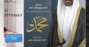 أكمل القراءة » 🌺يتشرف الحاج ميرزا راشد حماد بدعوتكم لحفل عقد قران نجله *«محمد»*، بمأتم شباب كرزكان.