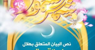 – . . نص البيان المتعلق بهلال شهر ذي القعدة الحرام لسنة 1441 للهجرة: . . بسم الله الرحمن الرحيم نظرا لثبوت الرؤية الشرعية للهلال مساء هذا اليوم الاثنين (ليلة الثلاثاء)، فقد تم اعتماد يوم غد الثلاثاء غرة شهر ذي القعدة الحرام لسنة 1441 للهجرة. . . علمًا بأن المعطيات …