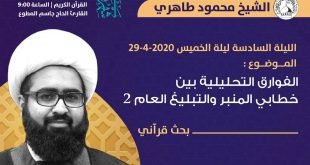 ‘ ۩ ﻣأﭠم ﻛرزﻛٱن .. . . البرنامج الرمضاني الكرزكاني . 🌙 برنامج مأتم كرزكان للرجال للشهر الفضيل عبر البث المباشر . . الليلة السادسة : ليلة الخميس 29-4-2020 . الشيخ محمود طاهري . عنوان المحاضرة: ~الفوارق التحليلية بين خطابي المنبر والتبليغ العام “بحث معرفي٢” . . دعاء الإفتتاح | …