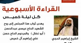 – . . ۩ مأتم كرزكان .. . . « القرآءة الأسبوعية» . . *الخطيب* : الشيخ إبراهيم الحجي . *الوقـــت* : 7:15 م . *المكـــان* : مأتم شباب كرزكان . *اللــــيلة* : ليلة الخميس *الموافق* : 19/2/2020 . . يهدى ثواب هذا المجلس إلى روح الشهيد الحاج عيسى عبدالحسن …