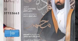 أكمل القراءة » 🌺تتشرف عائلة الحاج أحمد حسن كاظم بدعوتكم لحفل عقد قران نجلهم *«محمد»*، بمأتم شباب كرزكان.