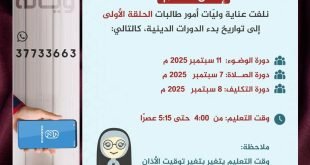 أكمل القراءة »تواريخ بدء التعليم الديني للفتيات بمأتم كرزكان للنساء @matamkn