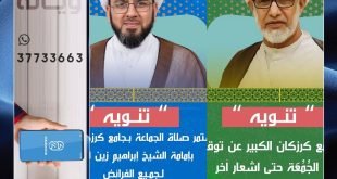 ۩ جۚامۘـ؏ كرزكان .. – يعلن جامع كرزكان الكبير عن توقف *صلاة الجُمعَة* حتى إشعار آخر . * كما يعلن عن إستمرار *صلاة الجماعة* لجميع الفرائض بإمامة الشيخ إبراهيم زين الدين @jame3karzakan المصدر: إنستغرام