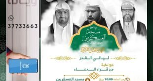 🕌 *مسجد العسكريين عليهما السلام – اللوزي* 🌙 *في ليالي القدر الشريفة* *ليلة 19 10:00 مساء* 🔸 صلاة ليلة القدر متابعة 🔸 الأدعية العامة والخاصة: عبد الله محمد سعيد 🔸 دعاء الجوشن: مكي بوحسن 🔸 الزيارة: ملا جعفر عاشور *ليلة 21 10:00 مساء* 🔸 صلاة ليلة القدر متابعة 🔸 الأدعية …