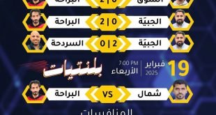 ويتنافس غداً على طريقة «بلنتيات» فريقا البراحة وشمال لتحديد المتأهل الثاني بشكل مباشر إلى نصف النهائي، فيما يتنافس الخاسر منهما مع صاحب المركز السادس «الديرة»، وستكون المنافسة الثانية بين فريقي السوق وغرب للتنافس على البطاقة الأخرى للرباعي. وعدلت اللجنة المنظمة الجدول ليكون نصف النهائي الجمعة ليلة السبت، وتركت النهائي في …