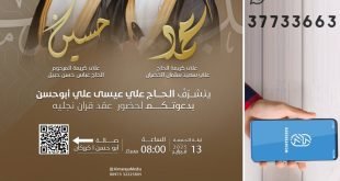 أكمل القراءة »🌺يتشرف الحاج علي عيسى علي أبوحسن بدعوتكم لحضور عقد قران نجليه *«محمد»* و *«حسين»*، بصالة أبو حسن.