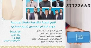 ≣▕ نـبــــــــارک لـكـم ذكــــــرىٰ ≣≣ *مـولد الإمـام الحسـين ‘ع’* ❉ العــريف: إبراهيم الشاخوري ❉ القــــرآن: القارئ قاسم القطري ❉ الكلمــــة: الشيخ جميل العالي ❉ النشـــيد: فرقة أنصار الحسين ❉ الجلوات: الرادود سيّد عبدالله الماجد ⌕ ليلة الأحد 1-2025-2 ⌕ الساعه: 07:20 ⦷ مـبـاشـــر | Live . على قناة مأتم كرزكان …