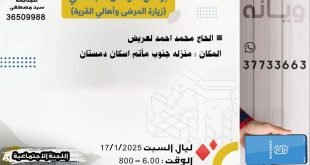 أكمل القراءة »برنامج التواصل الاجتماعي لهذا الأسبوع لزيارة المرضى وأهالي القرية.