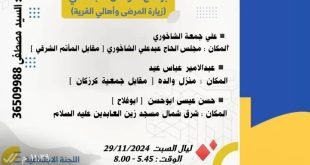 أكمل القراءة »برنامج التواصل الاجتماعي لهذا الأسبوع لزيارة المرضى وأهالي القرية.