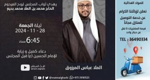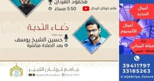 …•|【 دعاء كميل&دعاء الندبة 】|•… 📖 *دعاء كميل* 🗓 *28/11/2024* ⏱5:50 مساءاً 🗣 القارئ محمود الفردان 📺 *الـبـث المباشر على قناة* *مـأتـم كـرزكـان للرجـال* @matamkarzakan 📖 *دعاء الندبة* 🗓 *29/11/2024* ⏱ بعد صلاة الصبح مباشرة 🗣 القارئ حسين الشيخ يوسف @jame3karzakan ———— الاعلان مستقبل الجابرية للتجارة أعمال الحديد أعمال الألمنيوم …