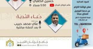 …•|【 دعاء كميل&دعاء الندبة 】|•… 📖 *دعاء كميل* 🗓 *14/11/2024* ⏱5:50 مساءاً 🗣 القارئ حسين الكعبي 📺 *الـبـث المباشر على قناة* *مـأتـم كـرزكـان للرجـال* @matamkarzakan 📖 *دعاء الندبة* 🗓 *15/11/2024* ⏱ بعد صلاة الصبح مباشرة 🗣 القارئ علي محمد حبيب @jame3karzakan ——— الاعلان مركز السقاء للمواد العذائية توصيل مجاني للمنازل …