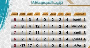 أكمل القراءة »ترتيب فرق المجموعة الأولى بعد نهاية دور المجموعات وتأهل فريقي القهوة وحي الرضا ل…