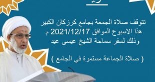 🛑تنويه ۩ جۚامۘـ؏ ڪڕزڪٰٱ̍ن . . 🔸 تتوقف صلاة الجمعة في جامع كرزكان الكبير لهذا الاسبوع فقط الموافق 17/12/2021 م وذلك لسفر سماحة الشيخ عيسى عيد . ( صلاة الجماعة مستمرة في الجامع ) ارسل كلمة اشتراك ليصلك جديدنا واتساب 36227552 ╼ ╾╼ ╾╼ ╾╼ ╾╼ ╾ ❐ *جۚامۘـ؏ ڪـڕزڪـٰٱ̍نۨ …