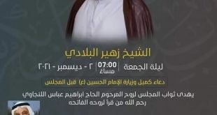‘ تغطية مصورة: القراءة الأسبوعية الخطيب السيد ياسر الساري، ليلة الخميس الموافق 1/12/2021 مجلس معقود على السيدة أم البنين عليها السلام ويهدى الثواب إلى أرواح المراحيم الحاج يوسف بن علي كاظمية محمد بوسعود الحاج عبدالله بن رمضان الفاتحة المصدر