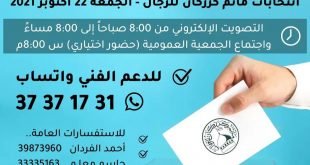 إن الحسين مصباح الهدى وسفينة النجاة – الرسول (ص) 🗳️ يوم الانتخابات 🗓️ انتخابات مأتم كرزكان للرجال – الجمعة 22 أكتوبر 2021 التصويت الإلكتروني من 8:00 صباحاً إلى 8:00 مساءً واجتماع الجمعية العمومية (حضور اختياري) س 8:00م 🟢 للدعم الفني واتساب 37371731 للاستفسارات العامة أحمد الفردان 39873960 جاسم معلـم 33335163 …