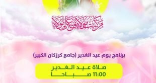 أكمل القراءة »۩ جۚامۘـ؏ ڪڕزڪٰٱ̍ن …•|【 عيد الغدير 】|•… *برنامج يوم عيد الغدير* *صلاة عيد …